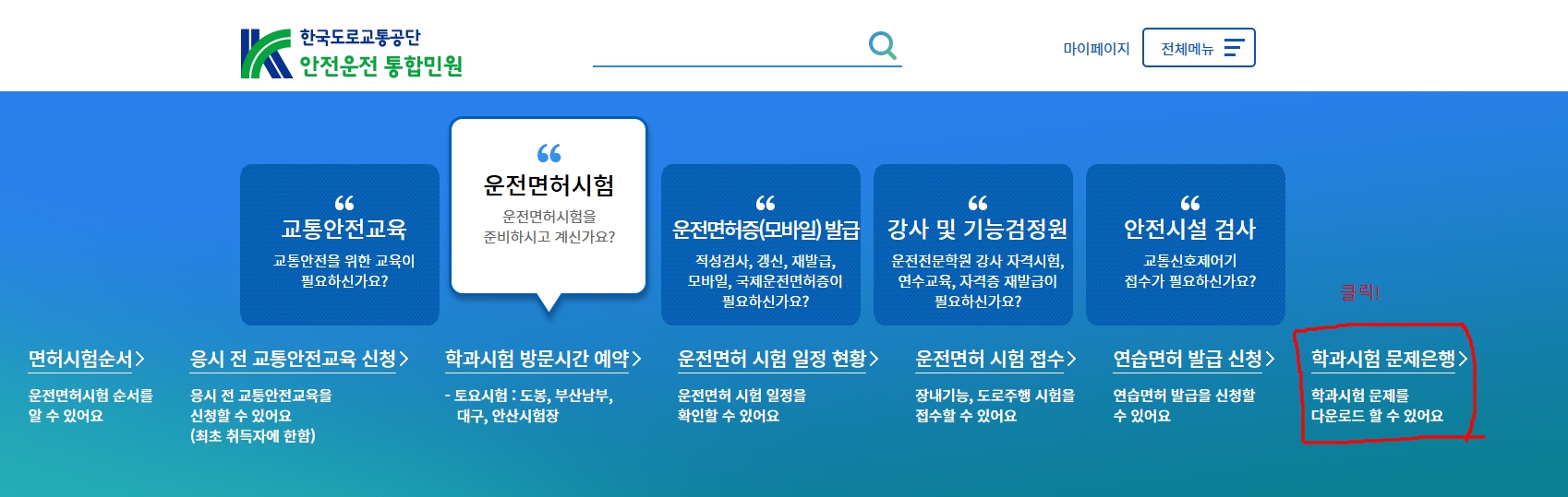 🔗 운전면허 학과시험 문제은행(도로교통공단 공식)