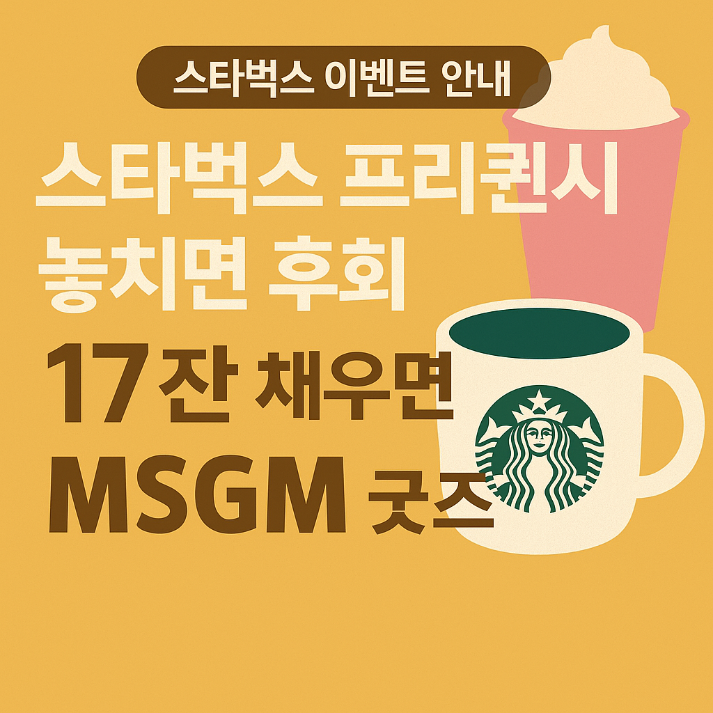 스타벅스 프리퀀시 놓치면 후회! 17잔 채우면 받을 수 있는 한정판 MSGM 굿즈 안내