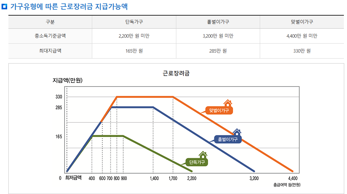 | 홑벌이 가구 | 3,200만 원 이하 |