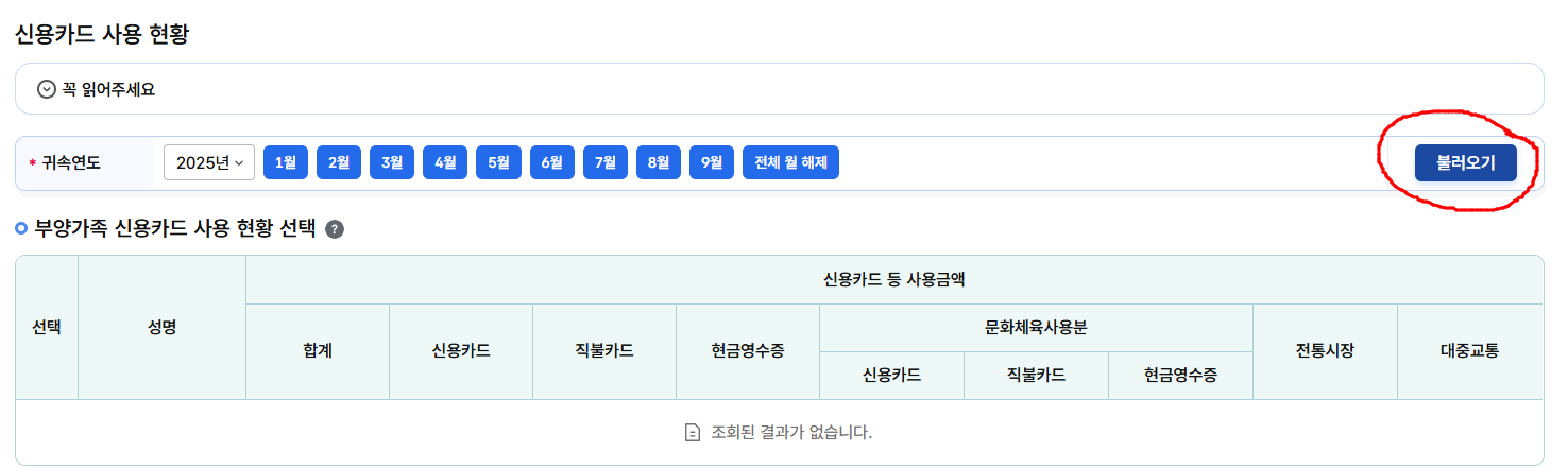 - 올해 1월~9월 카드·현금영수증 사용내역 자동 불러오기