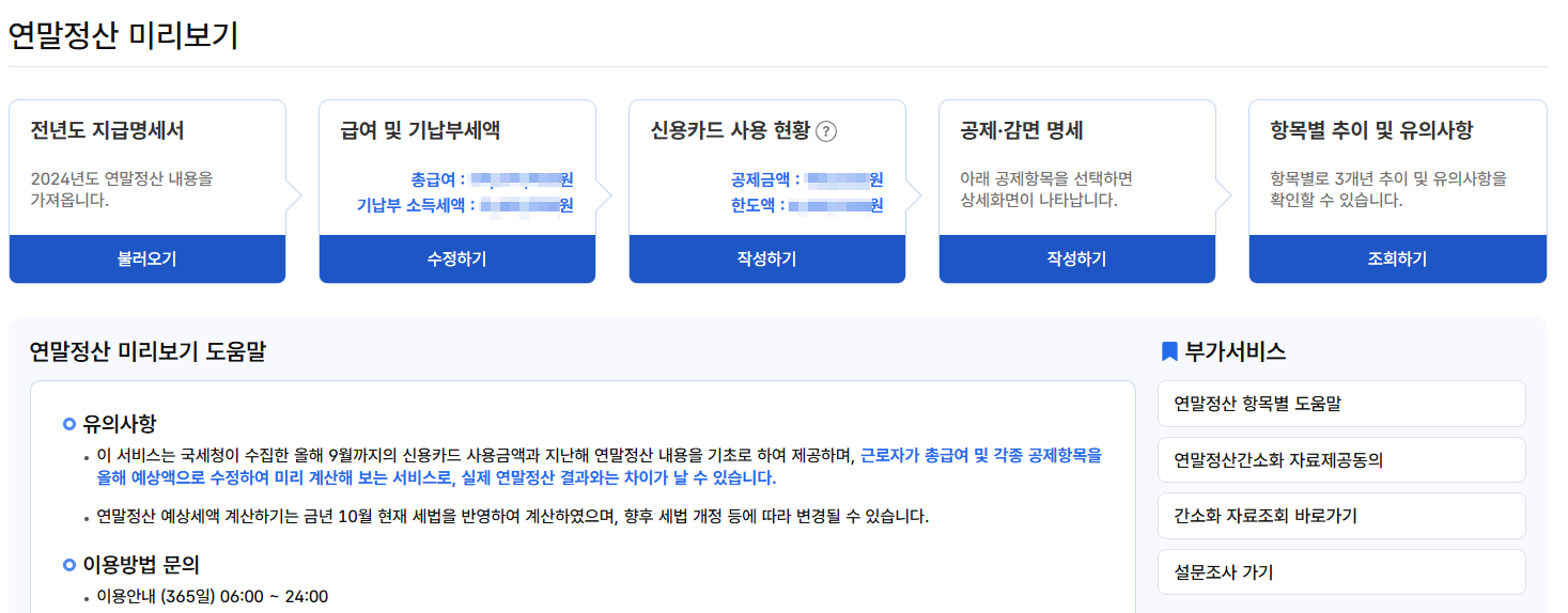 🔎 팁: 미리보기 결과에서 ‘+’(추가 납부 예상)가 나타난다면, 지금부터 카드 사용 제한, 절세상품 가입, 공제 요건 확인 등 절세 전략을 세울 필요가 있습니다.